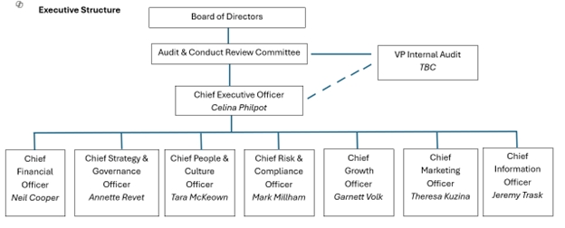 The future executive structure is informed by the current Conexus model, which was refreshed three years ago based on research and third-party expert guidance. I also explored variations that not only reflect the evolving needs of the organization but also support what may be required for a successful merger. This approach supports our current direction and aligns with the partner credit unions’ shared commitment to exceptional member service delivery.